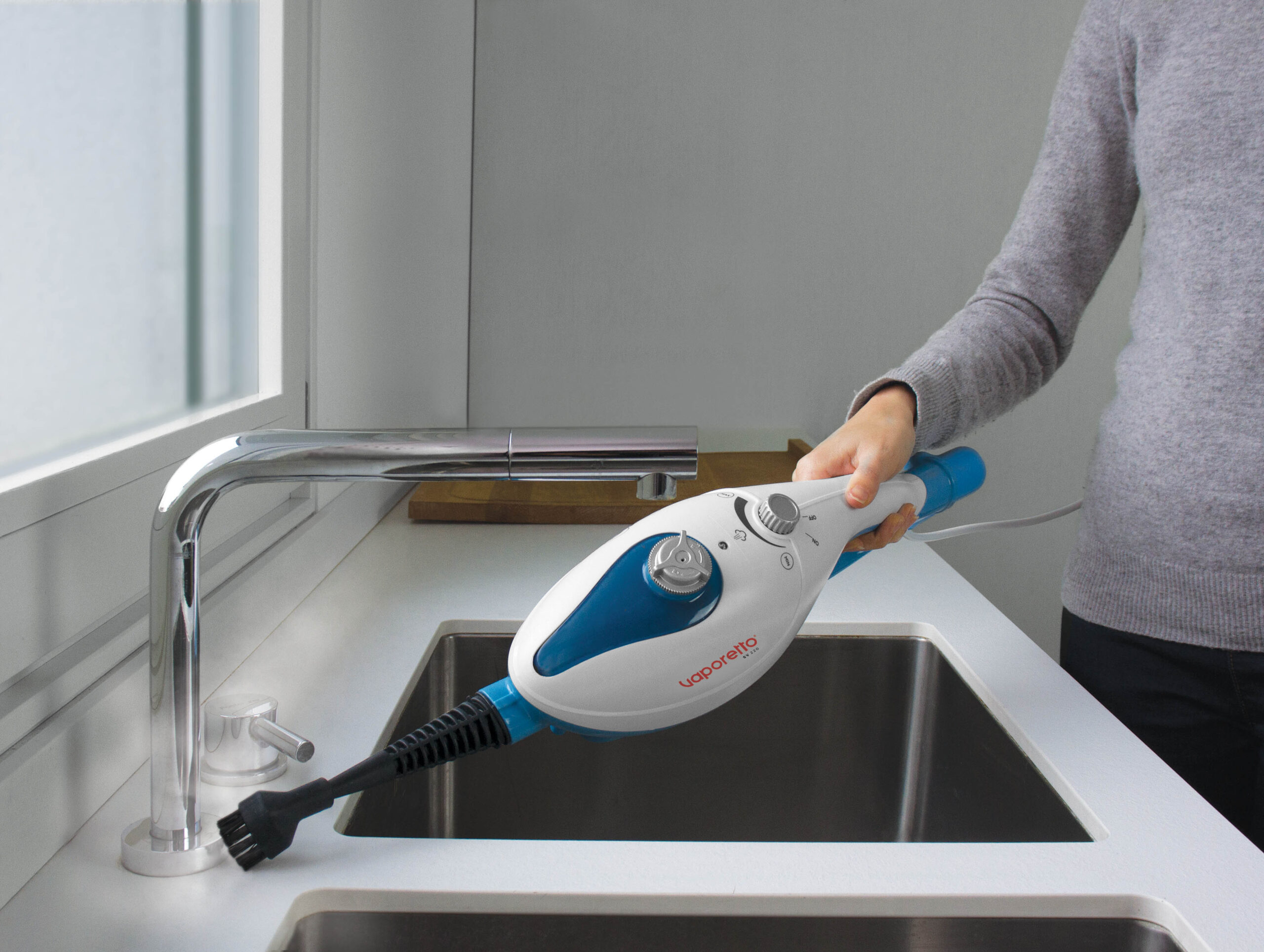 Kao ručni paročistač, Vaporetto SV220 čisti brzo i efikasno: šporet, sudopera, tuš kabina, sofa, prozori. Čistoća i higijena cele kuće.